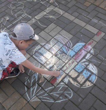 "ЛЮБЛЮ тебя, РОССИЯ!" - девиз конкурса рисунков на асфальте, посвящённый Дню России в ЛДП " Солнышко"